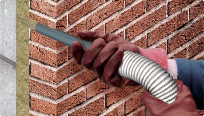 A continuación, realizamos pequeñas perforaciones en las paredes para introducir el material aislante, que se distribuye de forma uniforme por toda la cámara de aire.